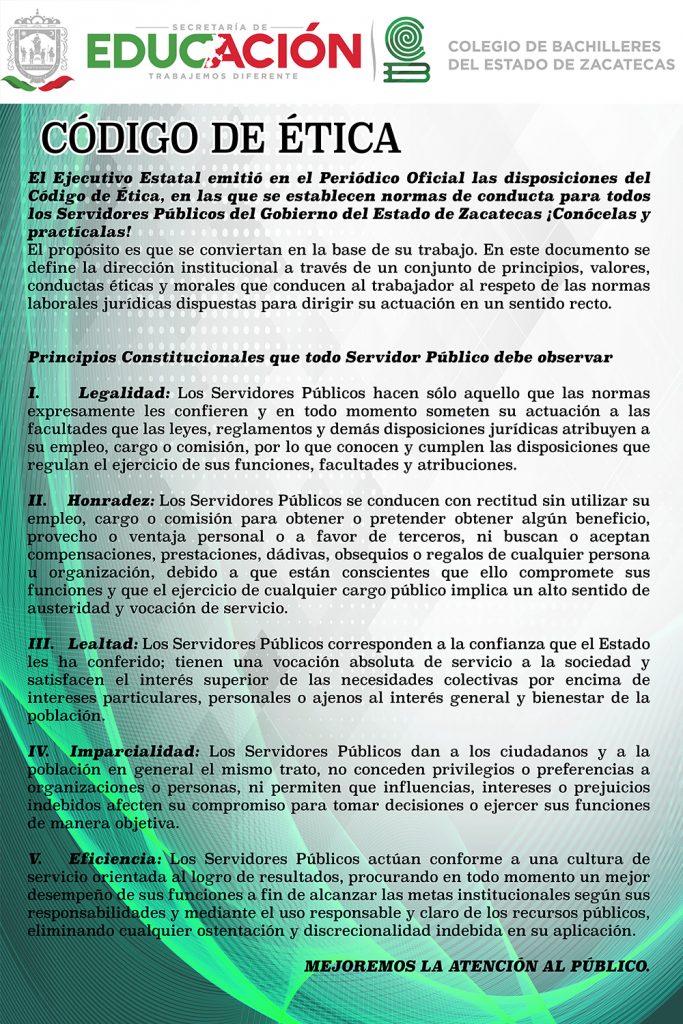 Código de Ética para las Personas Servidoras Públicas del Gobierno del Estado de Zacatecas